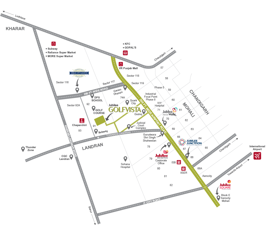 Jubilee Vallum is a Luxury residential project spread across 2.90 acres in Sector 90, Mohali. It offers 3BHK and 4BHK apartments with 126 units in total, spread across 3 towers with 16 floors and 1 tower with 15 floors, with only 2 apartments per floor. This project is all about privacy, comfort, and convenience.